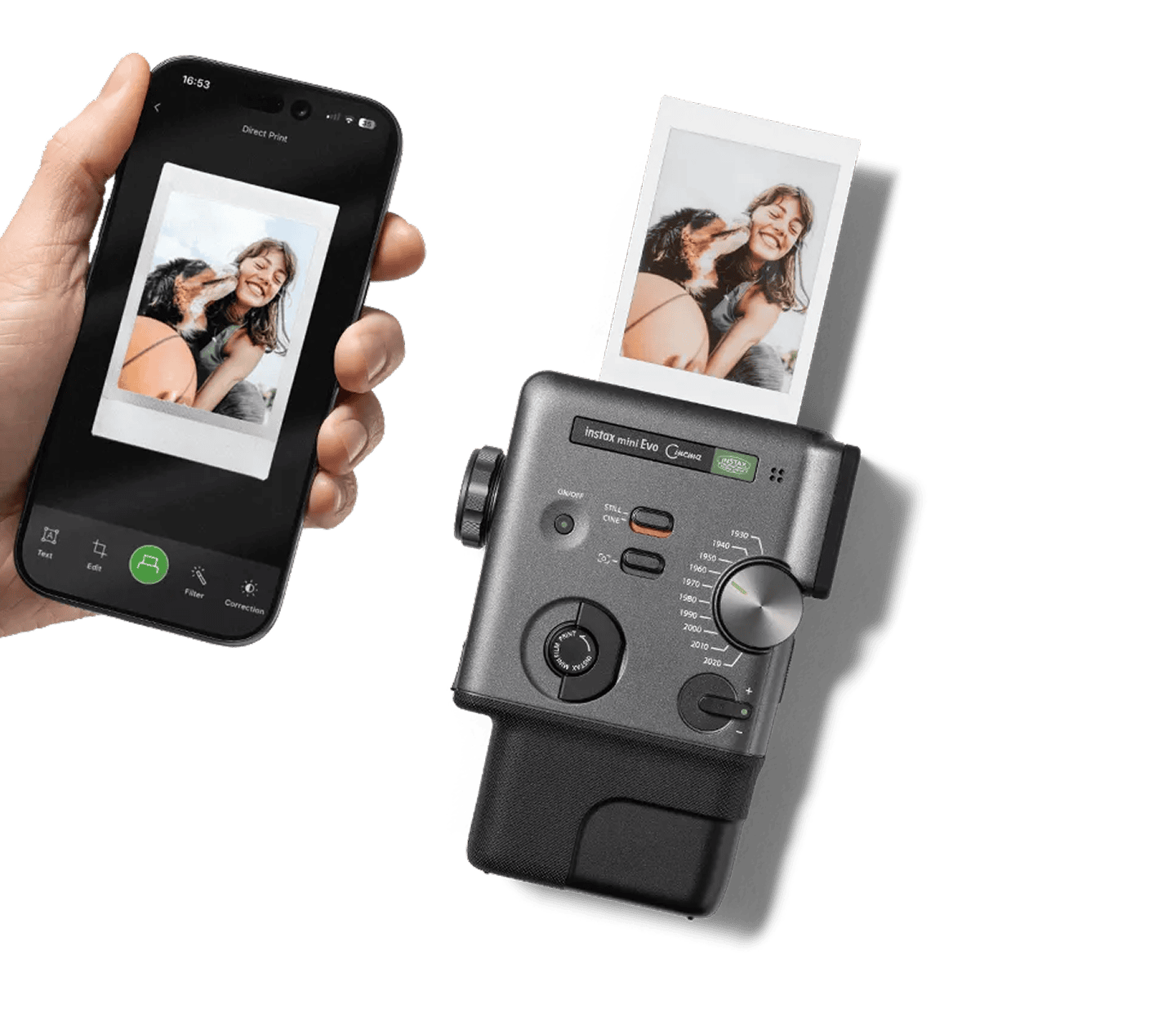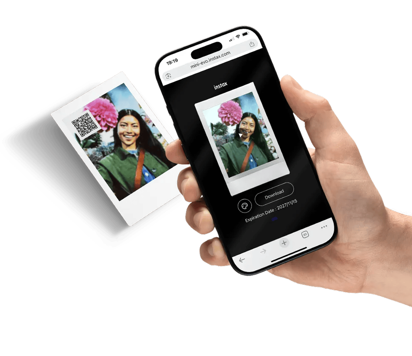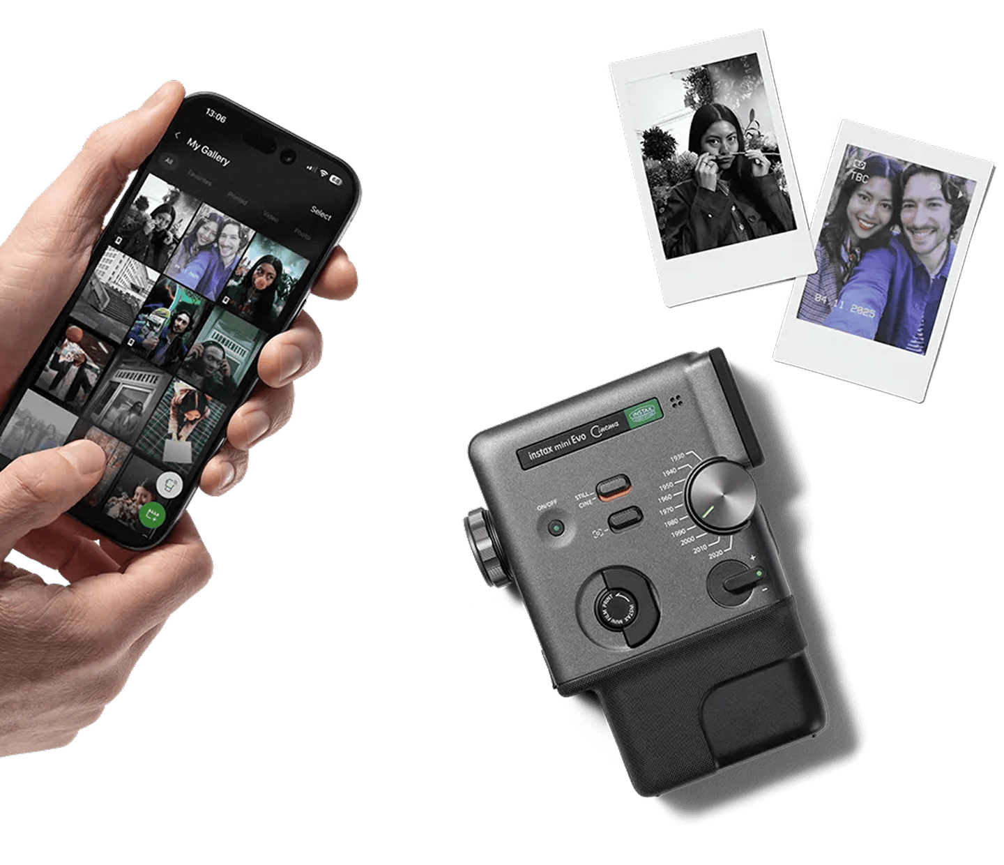 The instax mini Evo Cinema™ hybrid instant camera (mini Evo Cinema) delivers a smooth, unique photographic experience that turns casual moments into unforgettable ones. And the real magic? The power of three. A hybrid instant camera, smartphone printer and video camera all in one. Your story, in glorious motion.